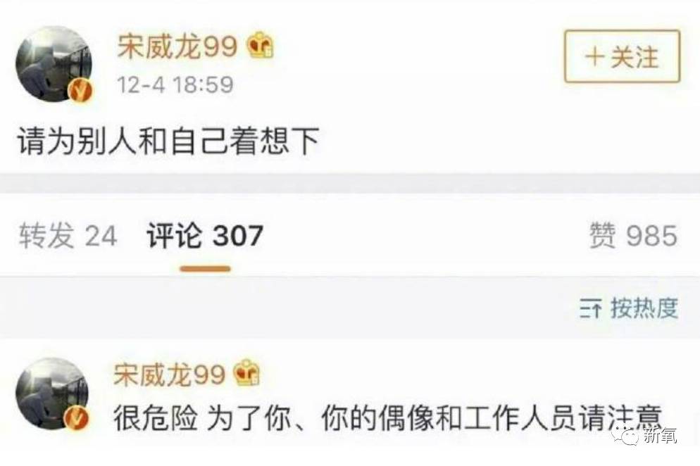 大概是真的被挤到生气了,宋威龙回去就发了条微博,应该就是在说这件事。斥责粉丝能不能为自己和偶像着想下。