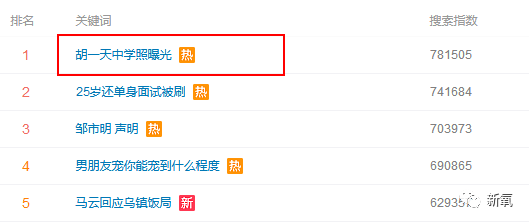 今天又有他初中时的照片爆出来,上了热搜第一。