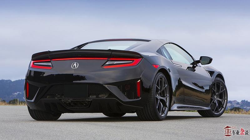 在动力上,讴歌NSX装备了一套由3.5L V6双涡轮增压发动机和三台电动机构成的混合动力体系,最大功率可达428kW,其中373 kW功率来自汽油发动机,55kW的功率来自电动机,总峰值扭矩达到了644N·m。传动方面,新车装备的是9速双离合变速器,0-100km/h的加速时间不超过3秒。