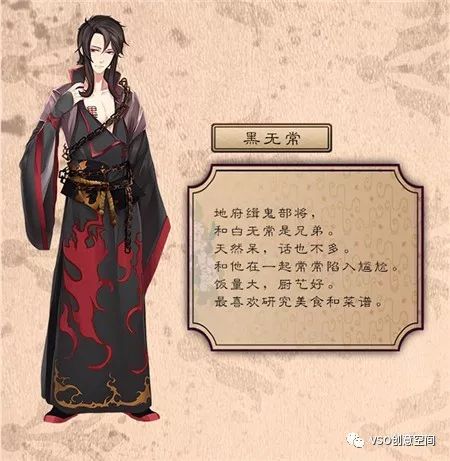 然后我自己是比较喜欢黑无常的人物形象,在胸前的纹身被衣服遮住让大家大致判断是个黑无常的黑字,但是其实是一个“嘿”字(嘿嘿嘿)算是画师小姐姐埋的一个小梗吧~