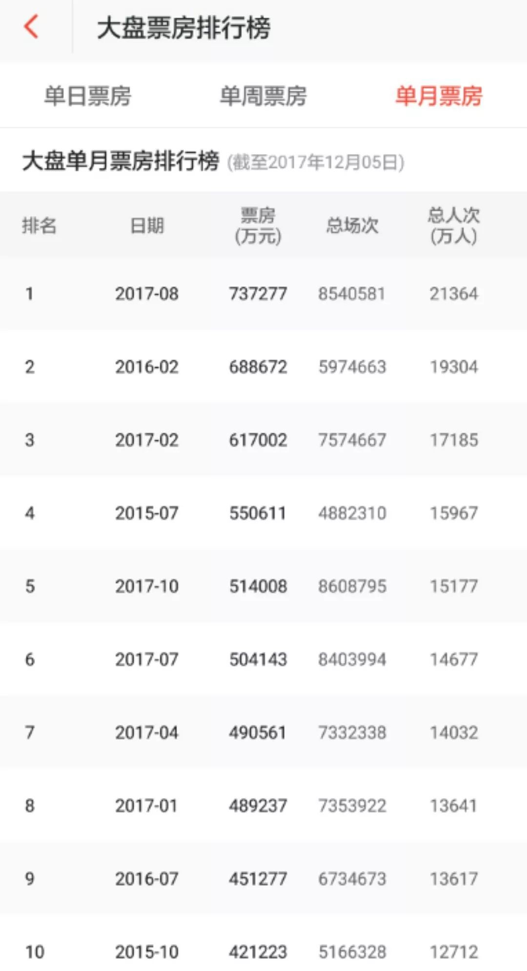 然而据统计,目前月票房排行榜前十位中,暑期档占了4个,贺岁档3个,其中两个为春节档所在月份,国庆档2个。