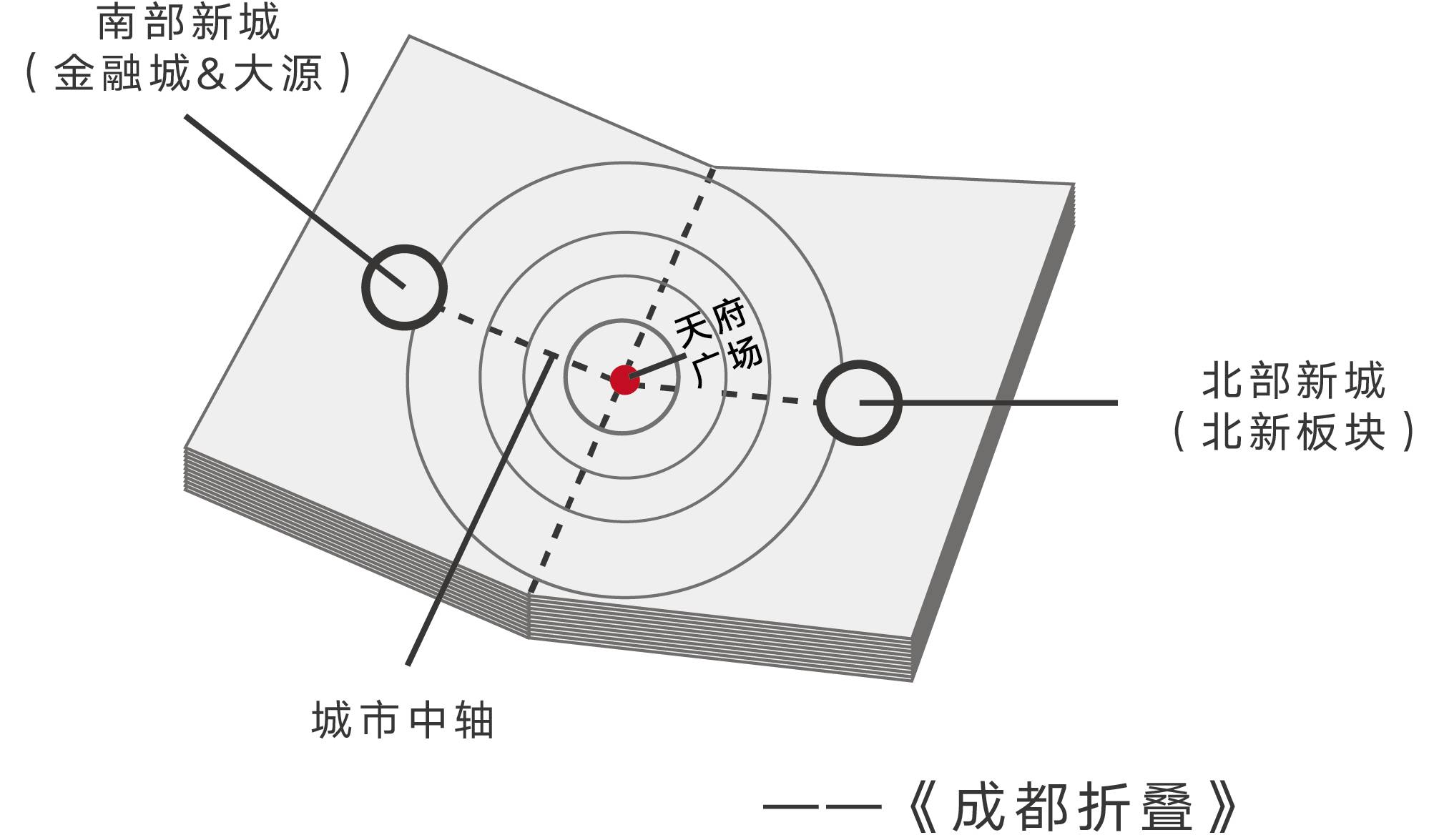 不妨试一下:以蜀都大道-天府广场-总府路为对折线,撬动整个地图南北对折。