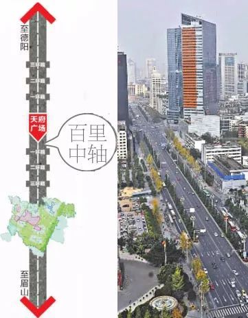 成都中轴,绵延数百里,北接德阳、南连眉山,是世界最长的城市中轴线,成都50%以上的地标(火车北站、天府广场、天府立交、欧洲中心、成都 “ 鸟巢 ” 、环球中心等)以及数百亿的产值都盘踞在这条线上,故被称为 “ 成都脊梁 ” 。这条“脊梁”自建成以来,成都最精华资源都有向中轴聚拢的趋势,也由此产生一个奇特的 “ 中轴效应 ” :所到之处,天翻地覆。