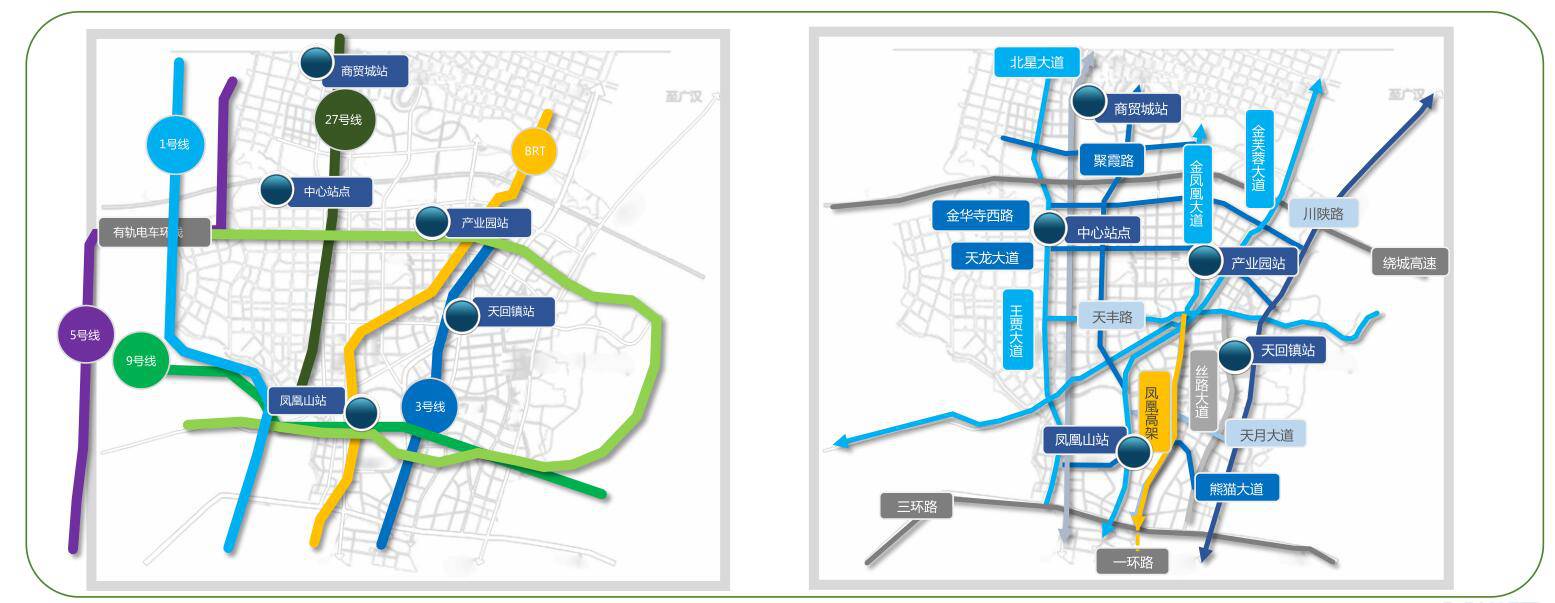 是从表面上看,它俩格局神似:同样依托城市中轴级大道(天府大道/北星大道),向外延伸,又刚好在四环旁、落地一个全新新城、并异曲同工地规划多个重大产业园区、以若干组团形式呈现。同时,基础设施水准、建设理念高度如同孪生兄弟。