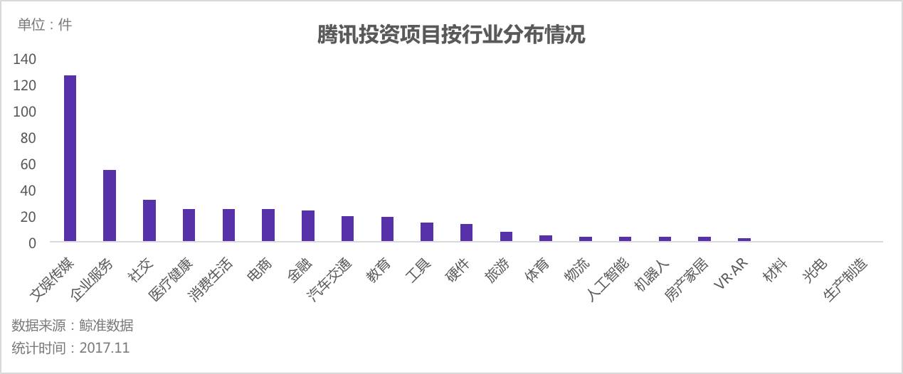 腾讯所投项目集中在,文娱传媒、企业服务、社交、医疗健康、消费生活,在主流科技公司纷纷押注的“人工智能、机器人、VR、AR”等技术前沿的领域,腾讯显然看起来有所懈怠。明年应该会是腾讯继续买买买的一年,他势必要在人工智能板块补齐自己的短板。不知道继续采取“守株待兔”的方式,是否会在前沿技术领域凑效。