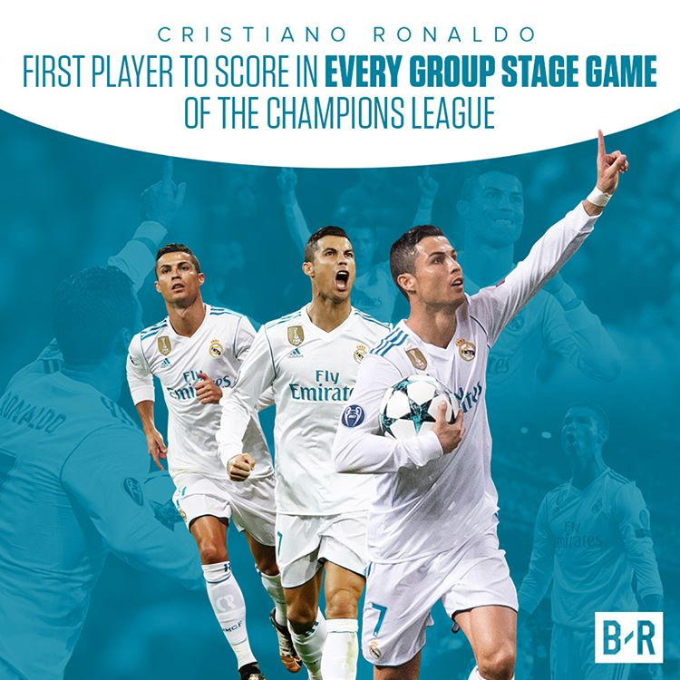 小组赛最后一轮,皇马在主场3-2险胜多特蒙德,C罗在开场仅仅11分钟就用一个世界波为球队取得2-0的领先。葡萄牙人就此创下欧冠新纪录,成为欧冠改制后第一位小组赛6轮全部进球的球员。本赛季的内马尔、1995-96赛季的皮耶罗与1997-98赛季的乌克兰名将雷布罗夫,都曾在前5轮小组赛全部进球,但也都在小组赛末战也都与得分失之交臂。