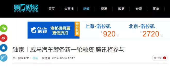 不过,消息并没就此止步,到了第三天(昨天,也就是12月6日),我的老东家“第一财经”刊出文章,称腾讯投资了威马,是这一轮的跟投者之一。