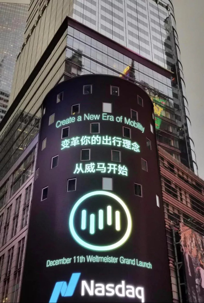 投资人抬头仰望,全世界最有名的大屏幕上,出现了有关威马汽车的巨幅广告。(如图)