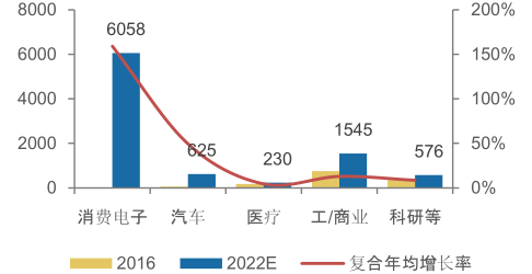 在一项智研咨询的数据调查中,2016-2022年3D成像会在消费电子领域迎来爆发,其平均年复合增速达到了160%,如下图所示,