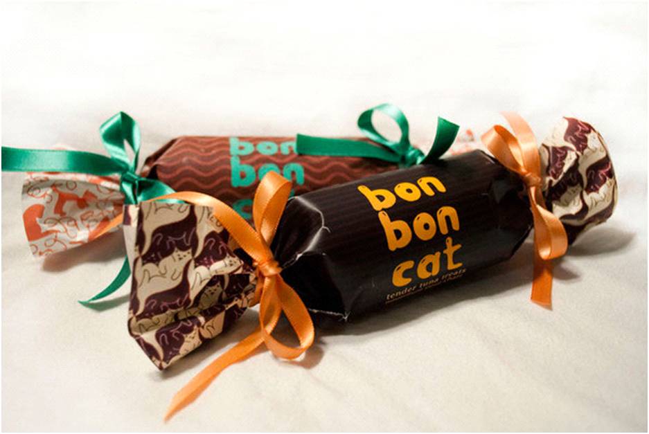 糖果造型的猫哂零食,写上小甜心宝贝猫的字眼,吸引大众眼球。左右以丝带绑起,表现出猫喵优雅的特性。轻轻一拉,缤纷花纸徐徐打开,令每一次开餐不但有饱肚感,而且有打开礼物的惊喜。我的小甜心,你今天拆了礼物没有?