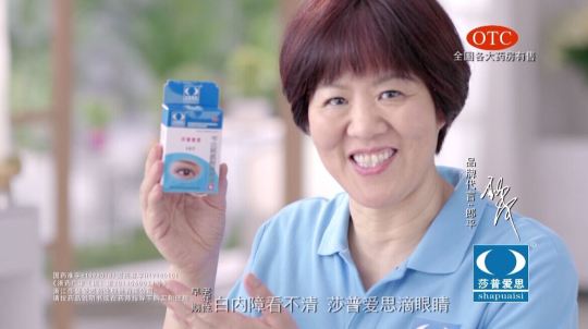 在电视广告和名人效应的强大攻势下,几乎没有人不对“白内障,看不清,莎普爱思,滴眼睛”的广告词耳熟能详。但最大问题在于,它的广告在用“症状”代替“疾病”。即使被批准的莎普爱思的适应症是“早期老年性白内障”,但在广告中“早期”“老年性”的字样你几乎看不清,并且没有出现在音频里。“模糊滴、重影滴、黑影滴”这种笼统描述症状、暗示适用人群、模棱两可的广告,也是在故意打擦边球。
