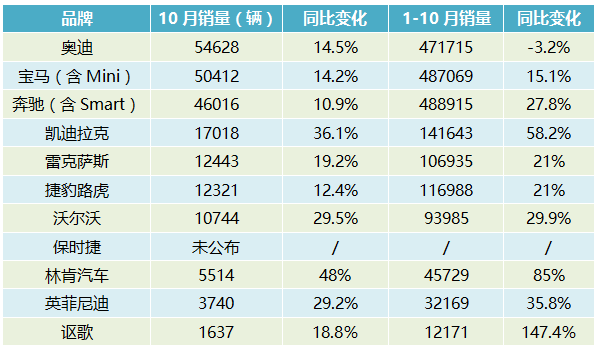 10月的凯迪拉克继续“打鸡血”,ATS-L迫近3系,XT5无限接近GLC,换新之前的XTS也有近4,000辆的销量。