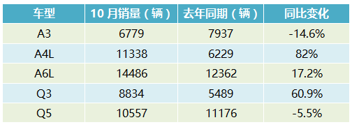 A3近7000的销量,对一个豪华品牌来说不低,但对奥迪来说低了,特别是考虑到它终端可以降价到14万。另一个原因是消费向上,所以奥迪A4L在10月居然卖到1.1万多,几乎比同期翻番。它在很大程度吃掉了帕萨特、迈腾的固有人群——一个下跌40%、一个下跌10%。当A4L卖的比帕萨特还多时,标志一个新的消费时代来临。只是Q系得小心了,领克01和XC40将上下夹攻Q3、XC60会直击Q5,奥迪得系统性的思考一下“泛品牌”时代自己的新杀手锏是什么?