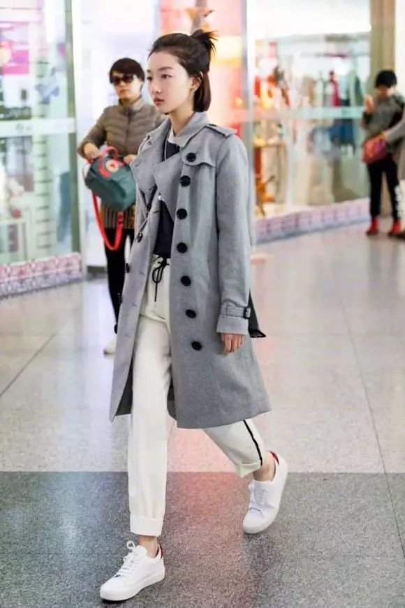 银灰色大衣+黑色内搭+米色长裤,全身素雅干净,没有太多的点缀,反而更适合小个子。