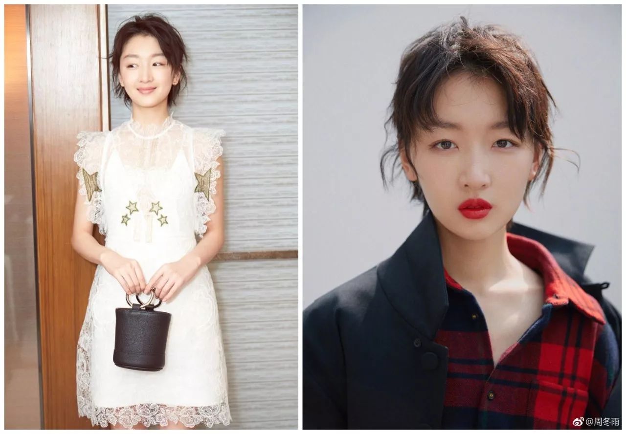 像周冬雨这种长相,脸小,五官小,身材也很瘦小,长发反而显得很多余,娇俏的短发配合恰到好处的妆容,反而更能突出她五官的优势来。
