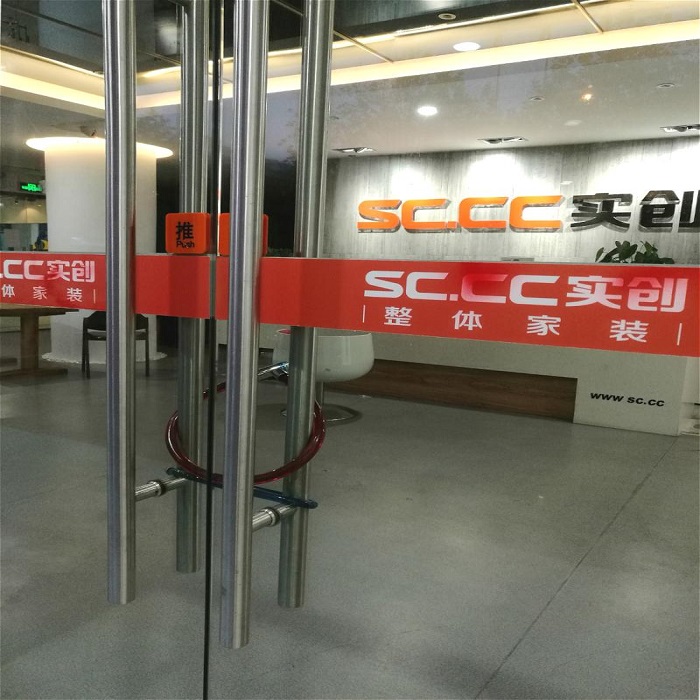 12月8日下午17时,记者来到浦东南路1630号“SC.CC实创整体家装体验馆”。体验馆门檐下还在闪亮滚动“实创完美家装(经典版)¥98800全屋定制家具搬回家,定制硬装+定制软装+定制家具”等字幕。自动门两侧依然竖着一人多高的“SC实创家装4周年”大幅广告。广告前,停了4辆标记“潍坊”、“治安巡逻”等字样的带警灯的电动自行车。