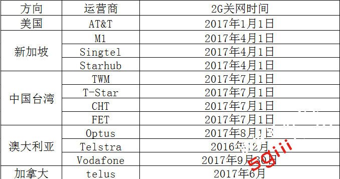 可以看到,新加坡、中国台湾、澳大利亚、美国、加拿大均关闭或者部分关闭了国境内的2G网络。据了解,日本、韩国、芬兰等国家的运营商均明确提出要关闭2G网络。同时,国内的三大运营商都将2G频谱重耕工作提上日程,工信部已发文,批准中国联通和中国电信在原有2G的部分频谱上部署4G网络。