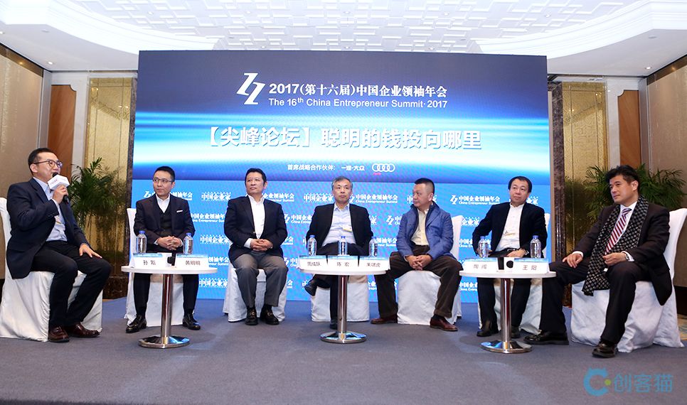 12月9日,在由《中国企业家》杂志社主办的2017(第十六届)中国企业领袖年会上。汉能投资集团董事长陈宏、金沙江创投合伙人朱啸虎、中国PPP基金董事长周成跃、知卓资本董事长陶闯、明势资本创始合伙人黄明明、赛伯乐投资集团总裁兼赛伯乐国际董事长王阳几位嘉宾进行了一场《聪明的钱投向哪里?》的圆桌讨论,高维资本创始人&开开教育创始人兼CEO孙刚担任嘉宾主持。创客猫受邀作为大会合作媒体到场进行图文直播及报道。