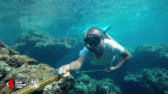 台湾兰屿人还在坚持潜水捕鱼的老办法。