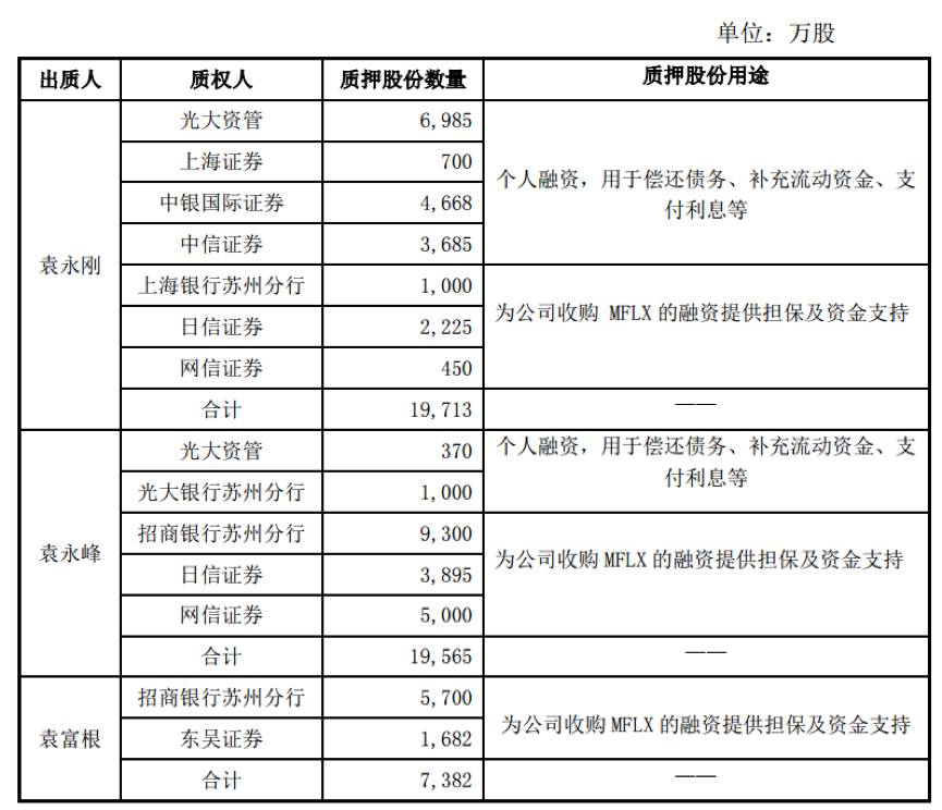 据东山精密的回复,袁氏父子具体质押情况如下: