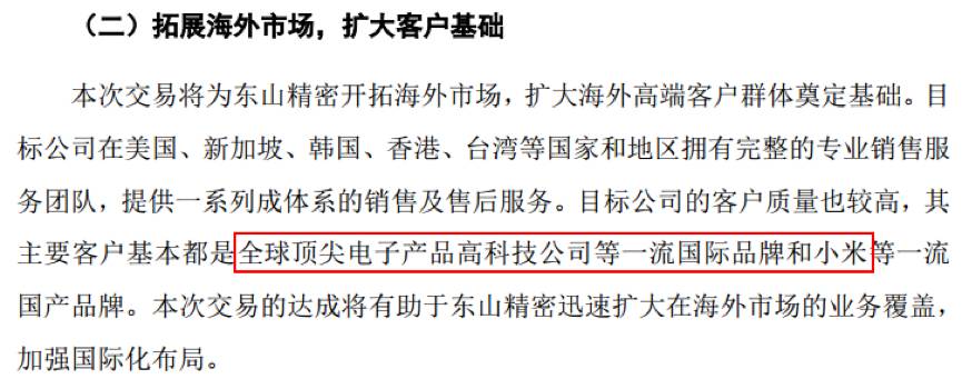 在东山精密披露的重大资产购买报告书(草案)中,对于MFLX的主要客户并没有直指苹果,而是用了“全球顶尖电子产品高科技公司”这个词,截图如下: