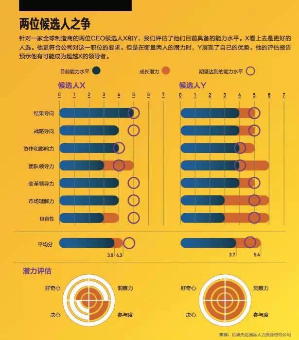 X和Y的故事最重要的结论就是:大多数时候,在任命高管,特别是选择高层继任者的过程中,机构必须在候选人的现有能力和发展潜力中做出权衡。对公司每位领导者潜力的合理评估,会降低权衡的风险,提高效率。