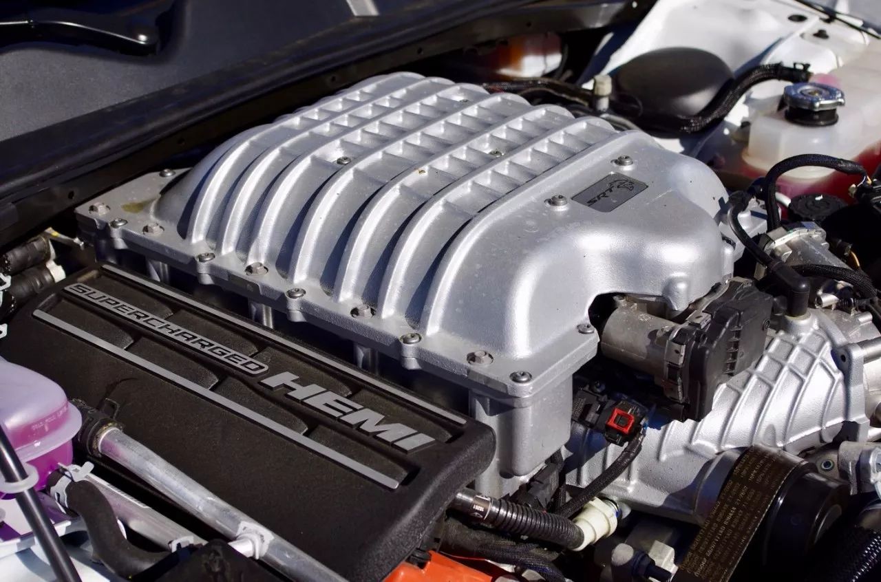 就动力而言,这台Challenger Hellcat的马力输出可谓恐怖,车上所搭载的Supercharged 6.2L V8 HEMI SRT Hellcat发动机最大马力输出达到了707匹马力,比法拉利488、兰博基尼huracan等一众欧洲超跑都要大,最大扭矩达到了650 pound-feet。