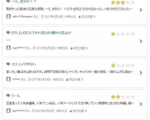 日本网友在上映后对《烟花》的差评