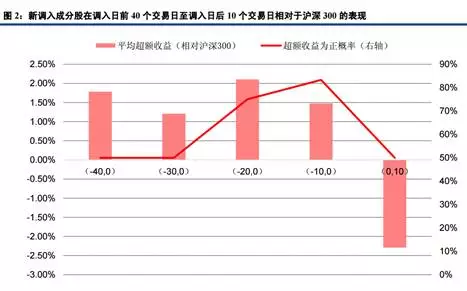 统计数据显示,在过去12次沪深300样本股调整中,新进入成分股有9次具有正的超额收益,平均每次超额收益达2.5%。