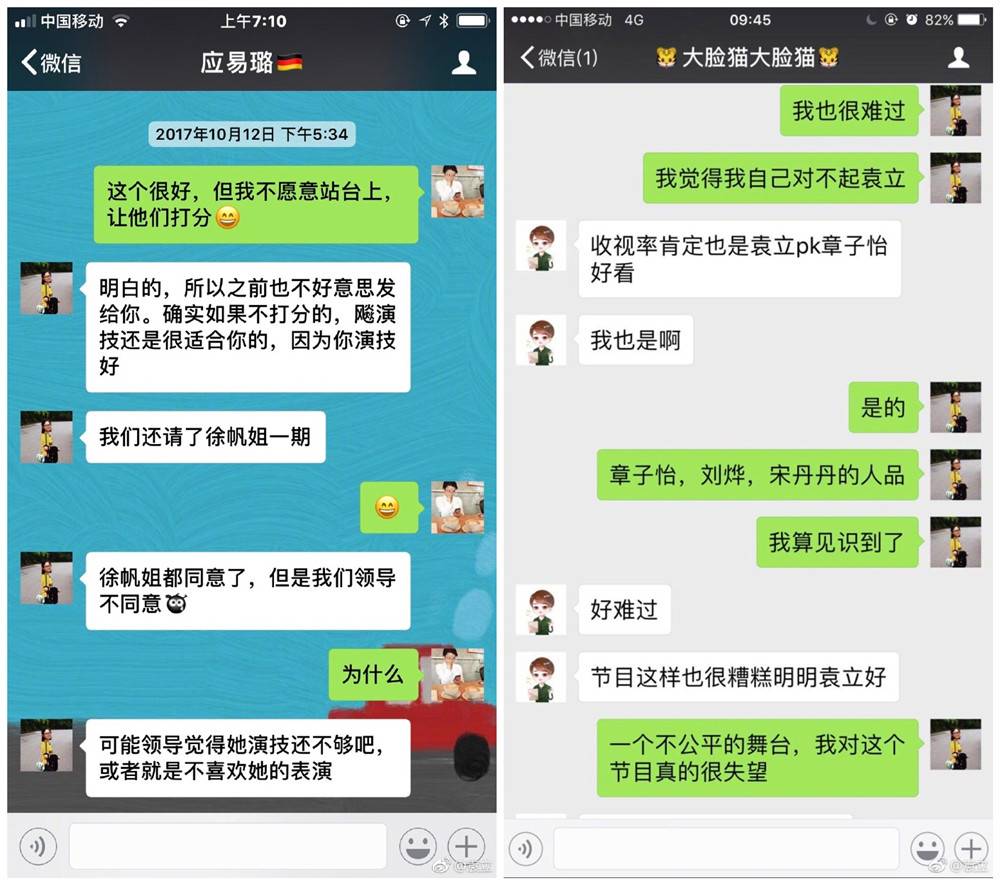 除了袁立与节目组的纠纷之外,这些微信截图还让一些不相干的人“躺枪”了。在微信聊天中,这位艺人统筹还向袁立爆料称,节目组曾经邀请过徐帆,但由于他们领导不同意而没了下文。由于袁立被淘汰,这位艺人统筹还向同事吐槽称,“章子怡、刘烨、宋丹丹的人品,我算是见识到了。”