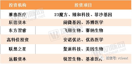 国内机构中,雅惠医疗、辰德资本、东方翌睿、高特佳、联想之星、远毅资本表现最积极。