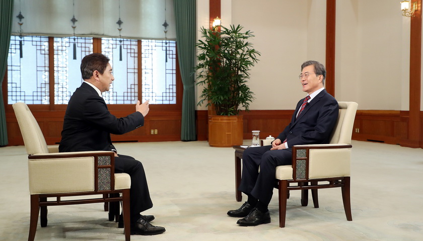 大家现在普遍关心的中韩关系问题、以及朝鲜半岛局势紧张等问题,特别是此前曾一度困扰我们双方的“萨德”问题将如何妥善的解决,韩方下一步将做怎样切实的努力,来消除双方在战略问题方面的关切?文在寅总统将如何作答?临行前韩方特意邀请央视记者来到青瓦台总统府,对文在寅进行了一次独家专访。