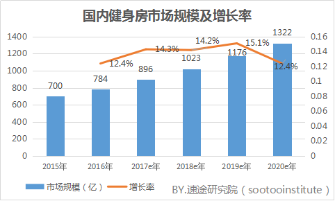 从近几年国内健身房市场规模数据看,2015年市场规模已经达到了700亿,并保持年均约12%的增长速度稳步增长,预计在2020年将达到1322亿。市场规模的持续增长,反映出人们对健身的诉求愈发强烈,健身房的用户结构和年龄范围也逐步延伸,也有数据显示,健身消费占家庭的支出比例也越来越高,成为一种生活潮流。