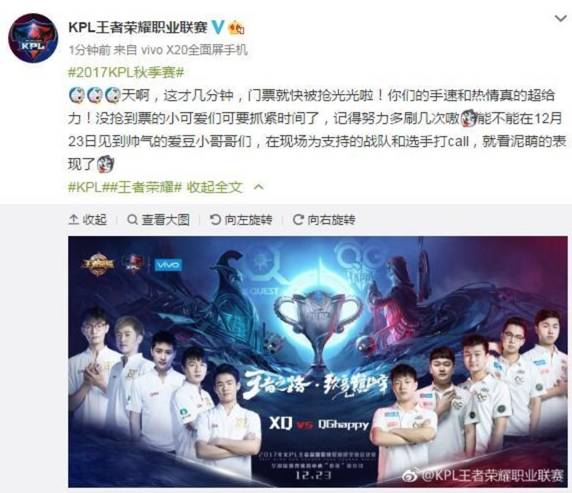 今年的KPL联赛非常成功,门票收入、企业赞助、以及直播观众数量,都在不断攀升。近日,将在12月23日举行的王者荣耀KPL秋季赛总决赛售票通道开启之后,近万张门票在12分钟内售罄,同时在线抢票的人数高达600万人。