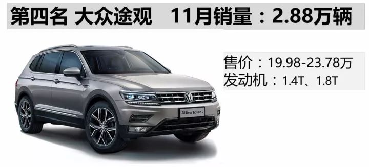 大众途观起初在国内上市后,一直都倍受人们的追捧,曾长时间都处于加价售车的情况。11月份,途观/途观L共售出2.88万辆,同比去年劲增40%左右,颇有一股王者归来的气势!销量能增长如此之快,80%以上的功劳要归功于新车途观L。