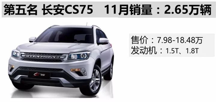 作为紧凑SUV市场中的“老将”,长安CS75已经征战多年且战绩依然不错,继续延续热销的势头,11月销量达到2.65万辆,不出意外将继续排名SUV销量前十的位置。