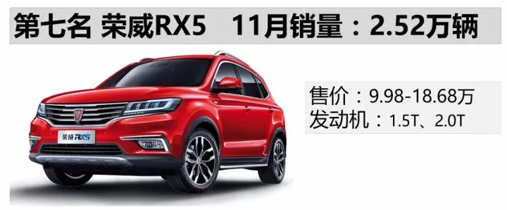 据上汽官方数据显示,上汽乘用车1-11月累计销量近47万辆,同比增长超70%。其中,荣威品牌1-11月累计销量达345706辆,同比增长72%,远超车市整体增速。从11月的销量来看,荣威RX5销量达2.52万辆,连续三个月销量2.5万+。可以看得出RX5面临传统一线SUV时表现出的不俗实力!