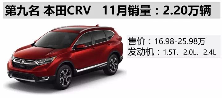 车榜君今天就将11月销量排名前10的SUV车型罗列出来,而其中大部分都是我们比较熟悉的车型,希望这能对即将购车的朋友们有所参考。: