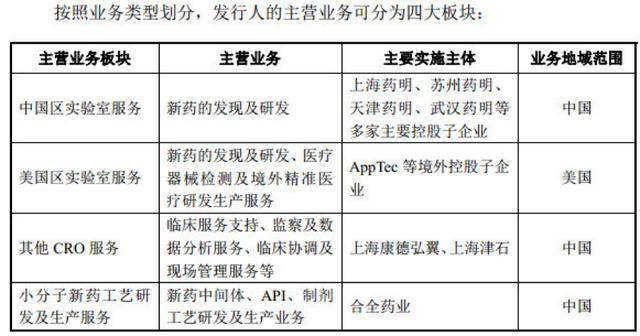 目前业务范围涵盖五个阶段:药物发现、临床前开发、早期(第I及第II期)临床开发、后期(第III期)临床开发及商业化生产。