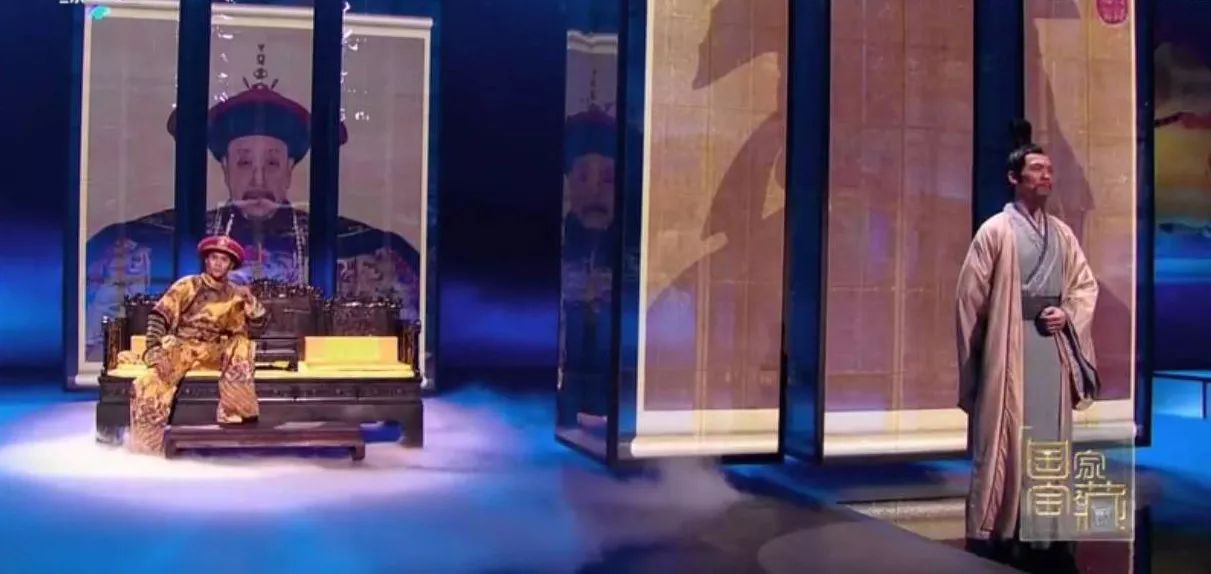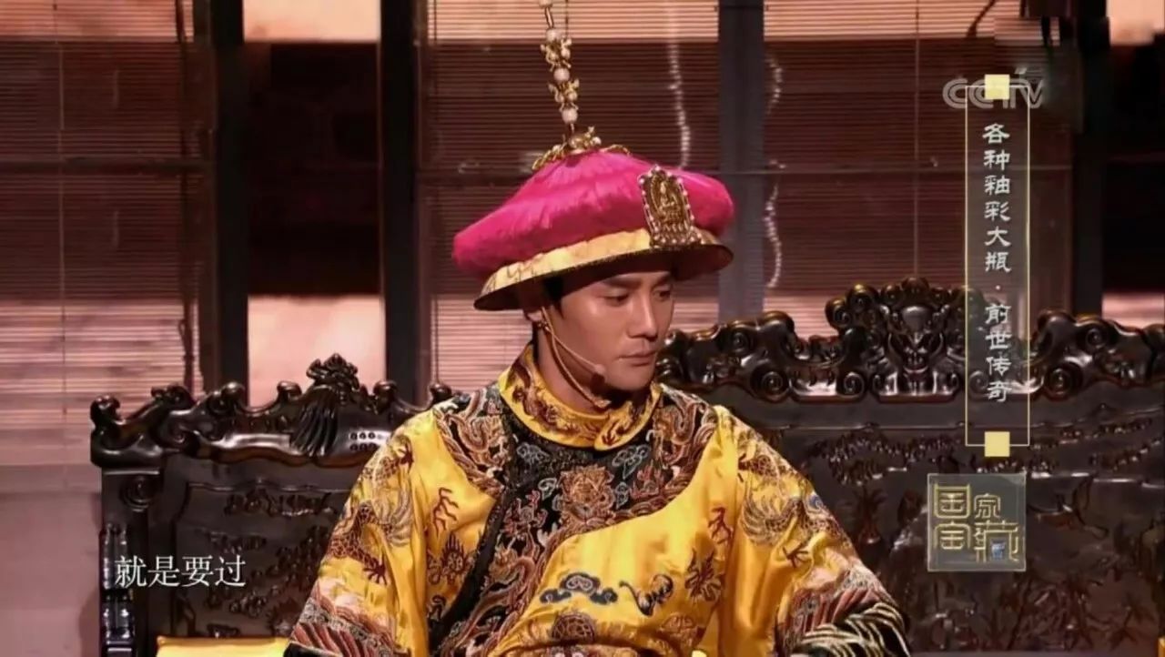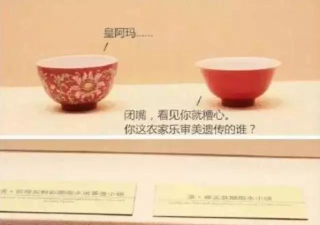对于乾隆爷的审美评判,网上更有段子展开遐想,道出了一段乾隆爷和父亲的对话,上面这张图也出现于《国家宝藏》第一季的桥段中。