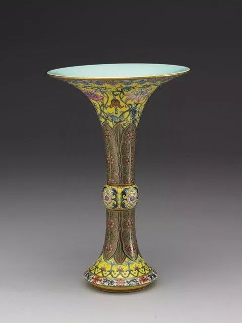 清乾隆 洋彩黄地蕉叶纹美人觚