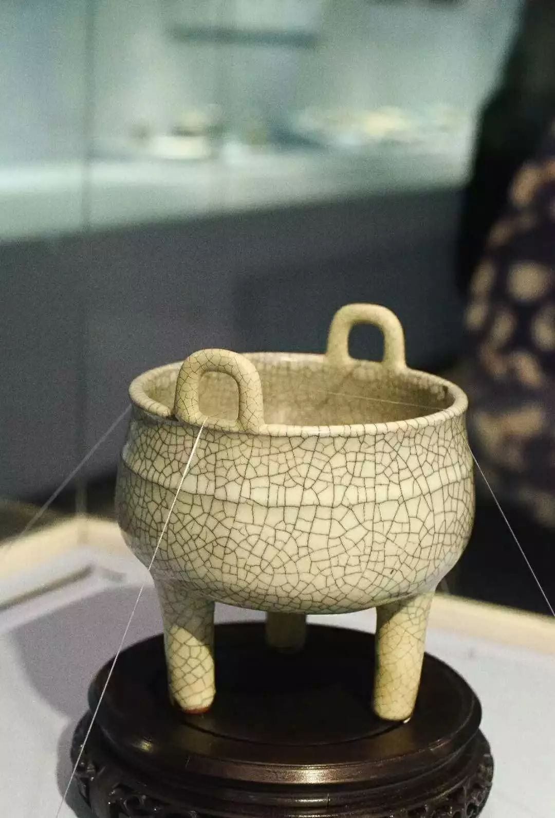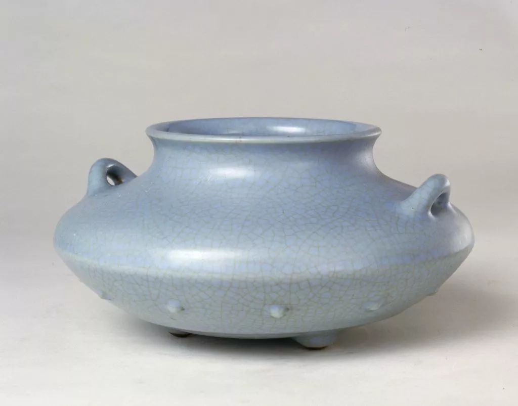 北京故宫博物院藏 哥窑灰青釉双耳三足鼎