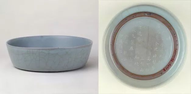 “修内遗来六百年,喜他脆器尚完全,况非髻垦不入市,却足清真可设筵。讵必古时无碗制,由来君道重盂圆。细纹如拟冰之裂,在玉壶中可并肩。”下署“乾隆御题”