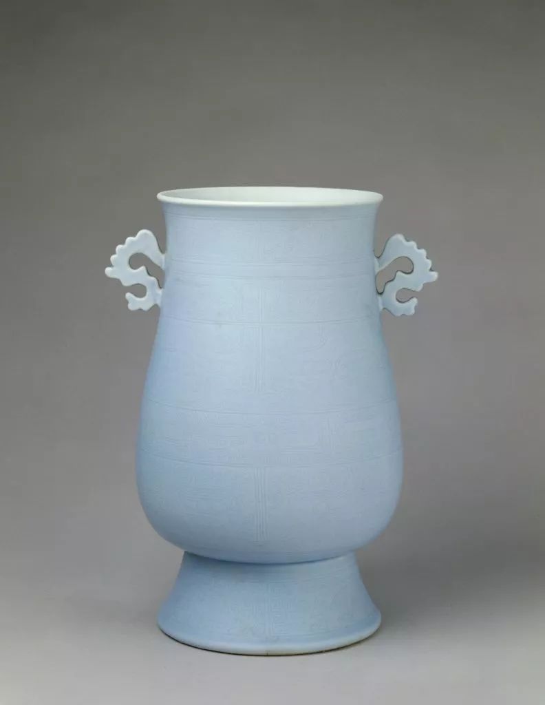 北京故宫博物院藏 清康熙-天蓝釉兽面纹螭耳尊