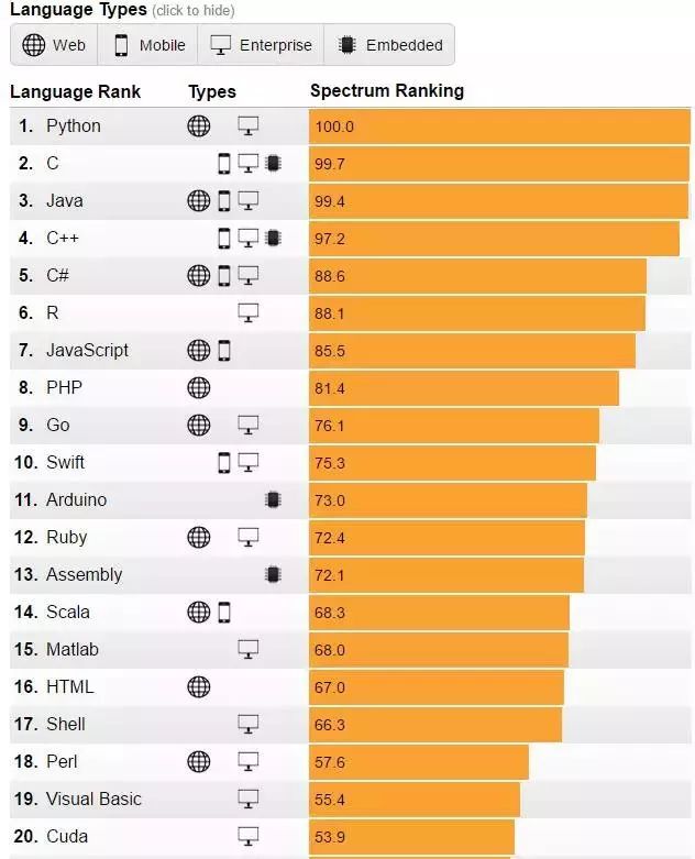 在今年7月份IEEE Spectrum发布的第四届顶级编程语言交互排行榜上,Python也位列第一。