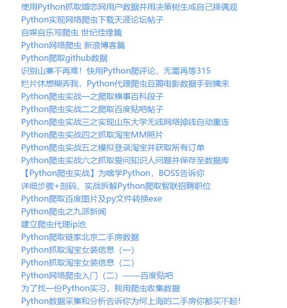 另外,Python对入门的学习者还是非常友好的,即使没有什么技术底子的开发者,也能简单上手,对于小白用户来说,“苦学”一段时间掌握一定基础后,基于Python开源特性,很快就可以通过教程写一些网络爬虫练练手,比如下面这些: