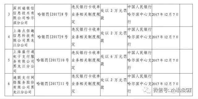 同时随着全国大检查的逐步落地,继上海本地支付机构全军覆没后,近期各地频繁有支付机构上榜,央行再启罚单“印刷机”模式,继人民银行石家庄中心支行火力全开一次性开出5张罚单、和人民银行湖南长沙分行2张罚单后后,今日人民银行哈尔滨分行再添一把火,开出了6张罚单。