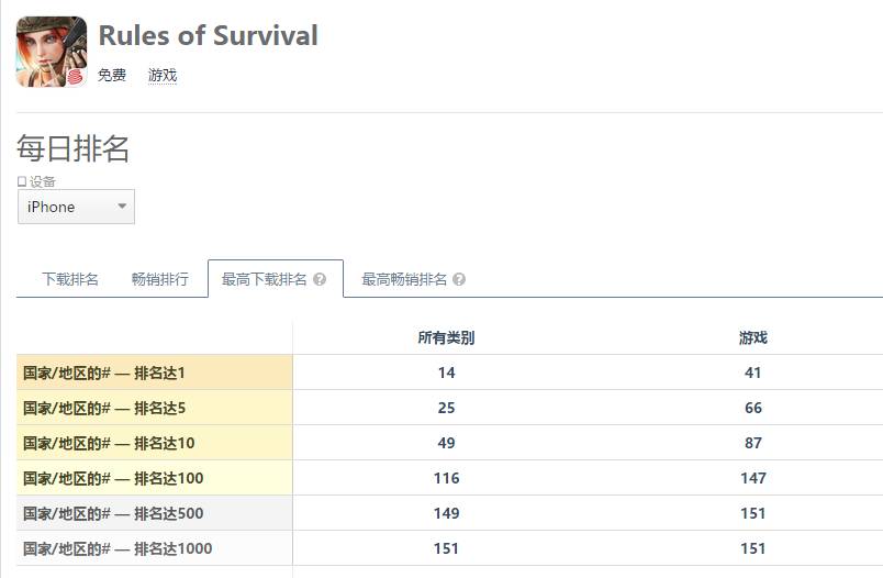 《终结者2》也不负所望,其在11月4日登陆App Store之后一直稳占游戏免费榜前列,更在14日上架国际版本《Rules of Survival》,成功登顶全球18个地区的游戏免费榜,目前全平台累计用户数突破5200万。