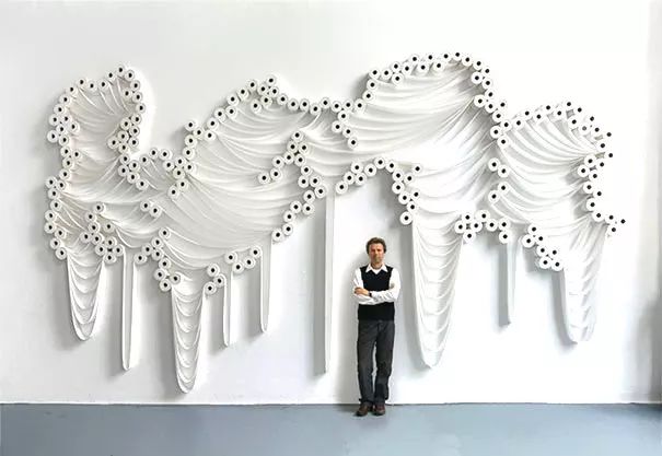现如今的卫生纸早已超过了功能性的范畴,成为艺术家创作的艺术媒介。基于平常事物,卫生纸构建起来的装置艺术能展现超出常人的思维方式。土耳其艺术家Sakir G kcebag用上百卷卫生纸创作出了流线型的装置作品,他尤其善于运用类似的日常用品创作。