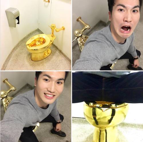 不走寻常路的艺术家莫里奇奥·卡特兰(Maurizio Cattelan)的纯金马桶不光令人大跌眼镜,还充满浓浓的土豪气息。这件名为《美国》的作品曾出现在纽约古根海姆美术馆第四层的洗手间里,并且供参观者正常使用。